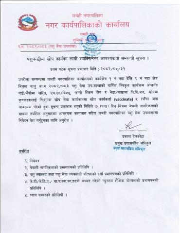 पशुपन्छीमा खोप कार्यका लागि भ्याक्सिनेटर आवश्यकता सम्बन्धी सूचना