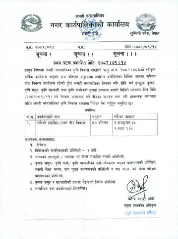 » मकैको हाइब्रिड/उन्नत बीउ वितरण सम्बन्धमा