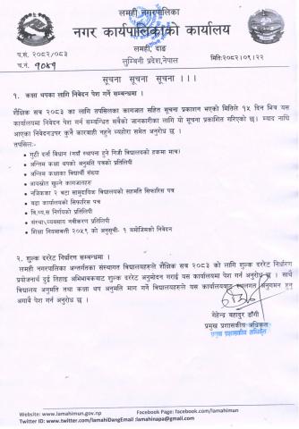 लमही नगरपालिकाका लागि आवश्यक पर्ने औषधी तथा सर्जिकल समाग्री खरिदका लागि विद्युतिय दरभाउपत्र आह्वान सम्बन्धि प्रकाशित दोस्रो पटको सूचना