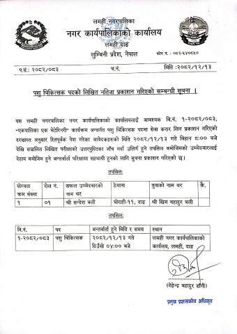 पशु चिकित्सक पदको लिखित परिक्षाको नतिजा प्रकाशन सम्बन्धि सूचना