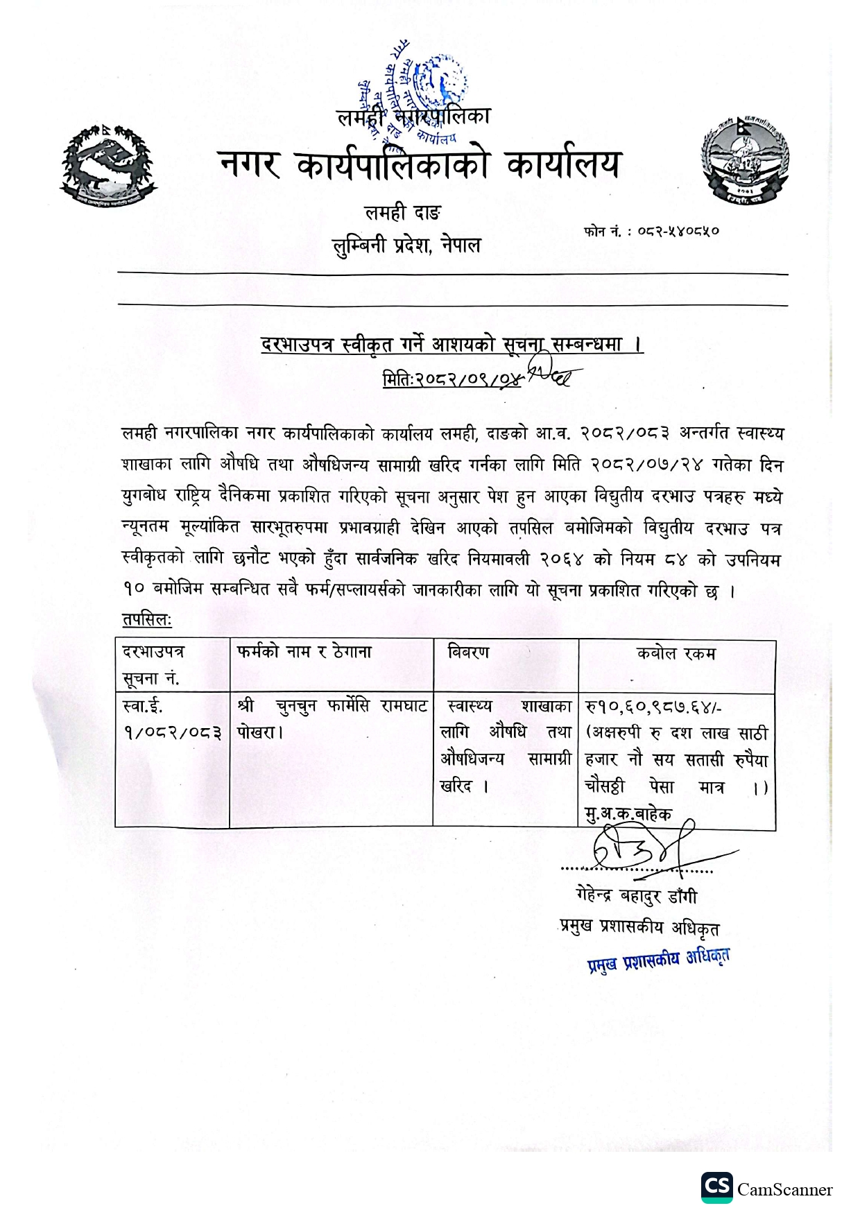 लमही नगरपालिकाका लागि आवश्यक पर्ने औषधी तथा सर्जिकल समाग्री खरिदका लागि विद्युतिय दरभाउपत्र आह्वान सम्बन्धि प्रकाशित दोस्रो पटको सूचना