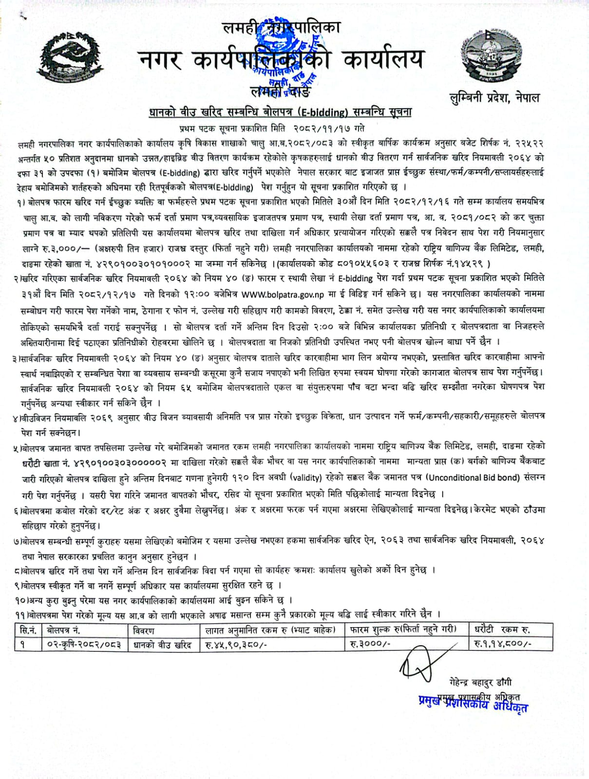 » धानको वीउ खरिद सम्बन्धि बोलपत्र आह्वान