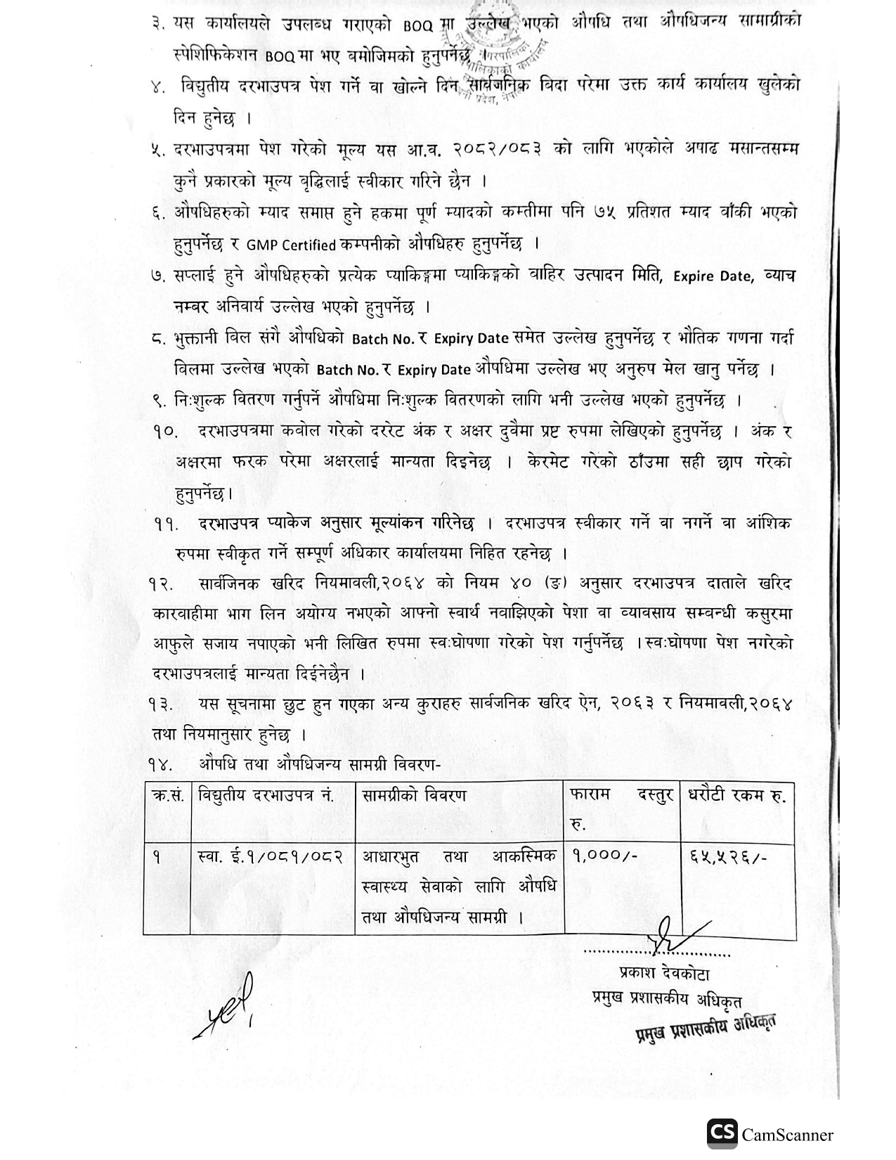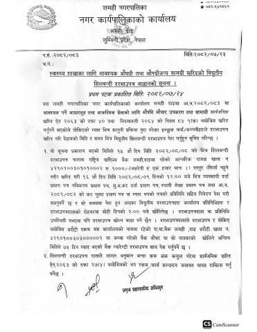 स्वास्थ्य शाखाका लागि आवश्यक औषधी तथा औषधी जन्री समाग्री खरिद सम्बन्धि सूचना